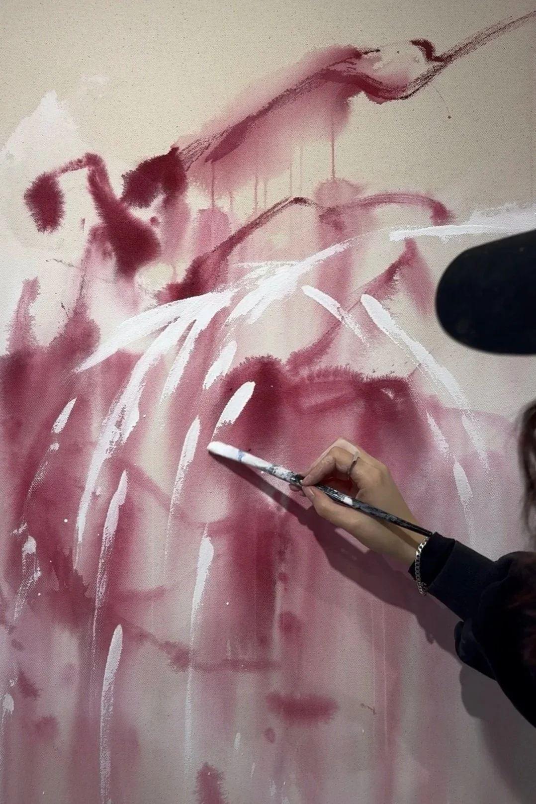 Meine Bildsprache bewegt sich zwischen Abstraktion und Figuration, zwischen Kontrolle und Loslassen. Farbe wird dabei zum Träger von Erinnerung und Wandlung.
